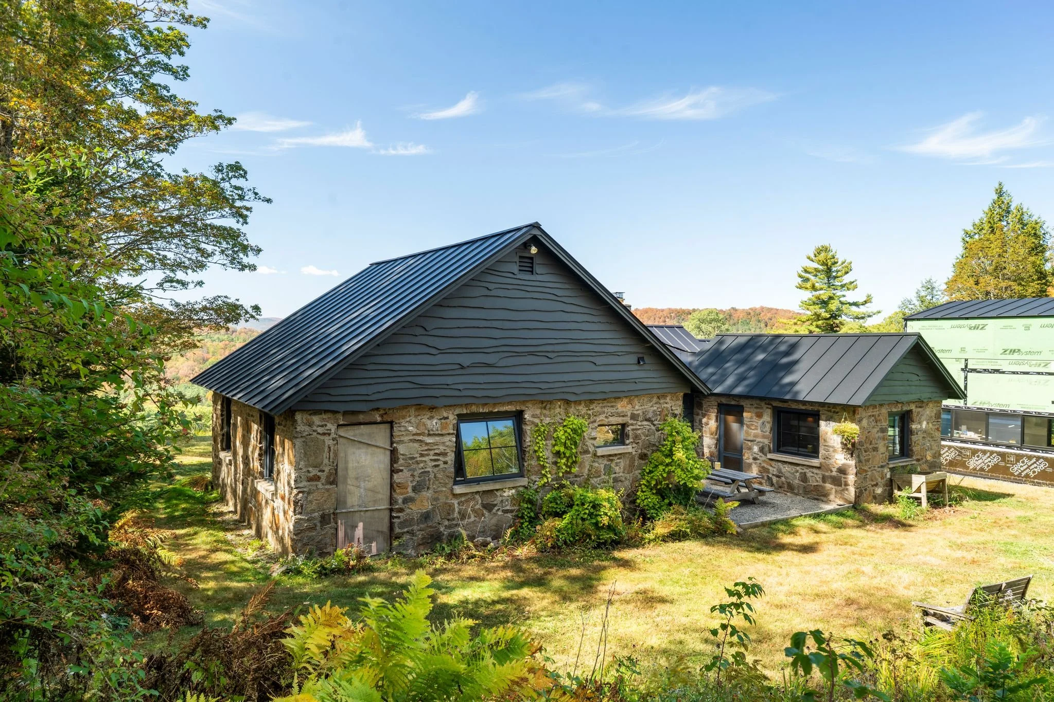 THE HILL- Breathtaking long range views of Killington Peak and Saskadena 6 greet you as you wind your way up to your private slice of Heaven. Situated on nearly 91 acres, this spectacular property offers everything, from the views and open fields to the saltwater pool tucked nicely into the hillside to the trails running throughout the woods and a lovely stone patio aligned perfectly for evening sunsets. Inside, nearly every aspect of the house has been updated. There are four bedrooms including a primary with ensuite bath and two additional full baths. The fully renovated kitchen is open to the dining area which leads to the living room with new floor to ceiling windows overlooking the Pomfret hills and mountains beyond. A stone fireplace anchors the living room, complete with a new insert and chimney liner. Between mini splits in all rooms and radiant floor heat in select areas, this house is fossil fuel free and derives most of its power from 61 onsite solar panels. Two Tesla power walls provide backup in the event of a grid outage. Separate from the main house is a two room cottage that was completely redone and currently set up as a guest bedroom and office, with a half bath inside and a seasonal outdoor shower on the deck. A short trek up through the woods takes you to an open meadow with a small cabin awaiting some finishing touches. Located privately atop the coveted Cloudland neighborhood just minutes from downtown Woodstock and Saskadena 6, this is a must see property.